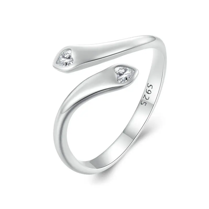 Pandora-stijl dubbele open hart ring - SCR946-E
