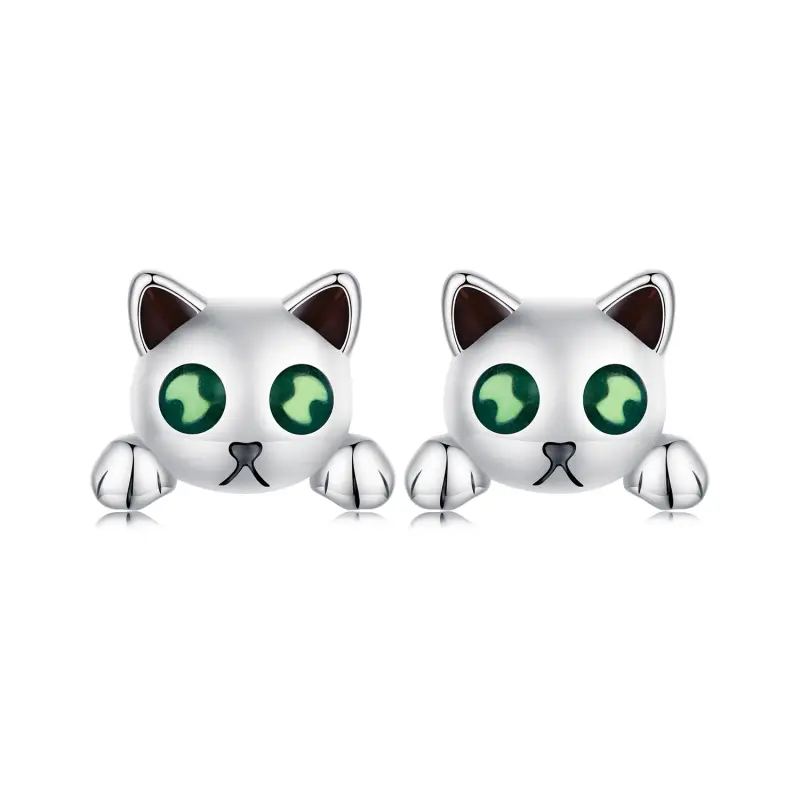 Pandora-stijl Glow-In-The-Dark Studs Oorbellen met Kattenmotief - SCE1643