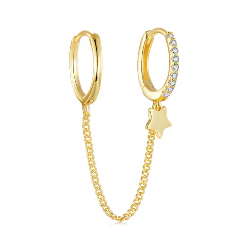 De Pandora Style Gouden Astropath Safe Chain - SCE914-B, een prachtig sieraad dat elegantie en individualiteit uitstraalt. Met zijn unieke dubbele oorlelmanchetontwerp is dit accessoire perfect om uw modieuze persoonlijkheid te laten zien. De oogverblindende steraccenten voegen een vleugje sprankeling toe aan uw oor, waardoor u zich onderscheidt van de massa. Deze veilige ketting is vervaardigd met nauwgezette aandacht voor detail en gemaakt van hoogwaardige materialen die duurzaamheid en een lange levensduur garanderen. De gouden afwerking voegt een vleugje verfijning toe, waardoor het een veelzijdig kledingstuk is dat voor elke gelegenheid gedragen kan worden. De Astropath Safe Chain verbetert niet alleen uw stijl, maar zorgt ook voor een veilige en comfortabele pasvorm. Het innovatieve ontwerp zorgt ervoor dat hij de hele dag op zijn plaats blijft zitten, zodat u met vertrouwen kunt bewegen. Geef uitdrukking aan uw persoonlijke stijl en maak een statement met de Pandora Style Gouden Astropath Safe Chain - SCE914-B. Omarm de trend en laat je oren stralen met dit modieuze en opvallende accessoire.