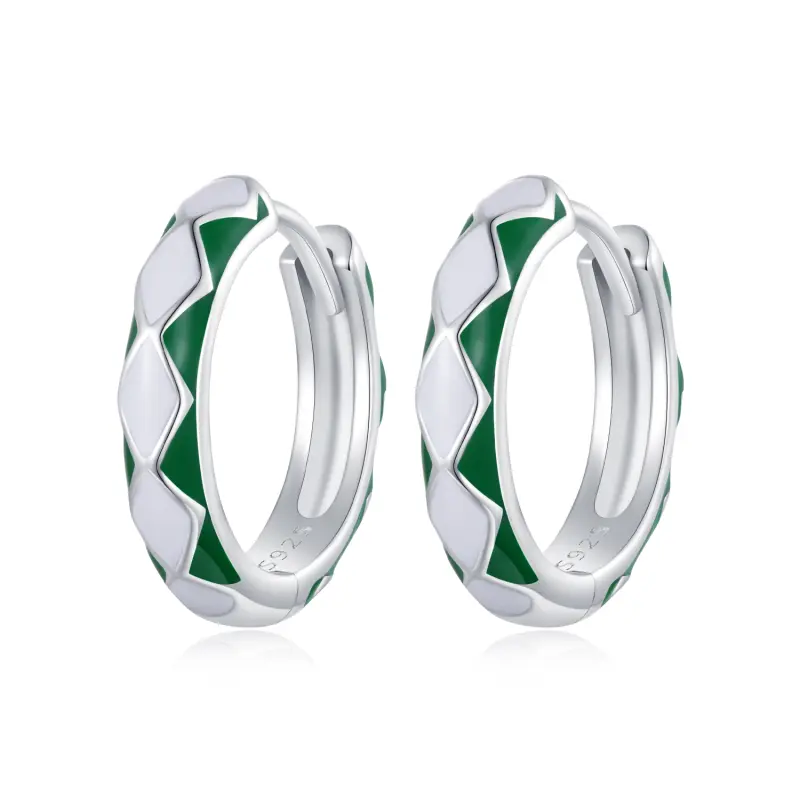 Pandora-stijl Groene en witte diamanten patroon Oorringen - SCE1611-GN