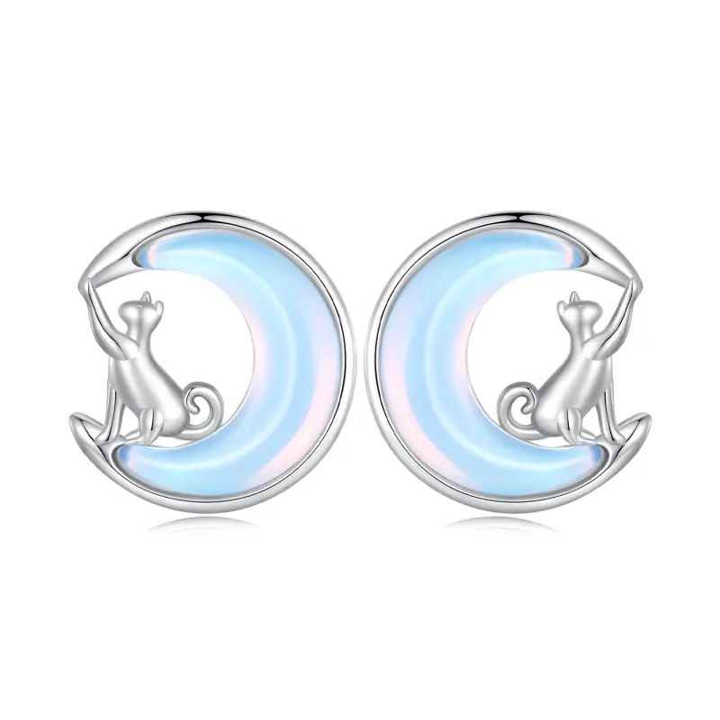 Pandora-stijl Maan Kat Studs Oorbellen - BSE913