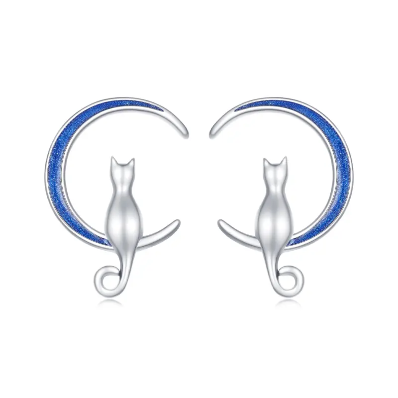 Onze prachtige Pandora Style Moon Cat-oorknopjes - SCE1609, vervaardigd met een betoverende druppeltechniek van blauwe olie. Deze oorbellen vangen de serene schoonheid van een maansikkel op, terwijl ze het sierlijke silhouet van een zittende kat laten zien. De combinatie zorgt voor een betoverende en mysterieuze uitstraling, waardoor je jezelf kunt onderdompelen in een unieke sfeer. Deze tot in de perfectie vervaardigde oorbellen zijn de perfecte aanvulling op uw sieradencollectie en symboliseren elegantie en individualiteit. Til je stijl naar een hoger niveau en geniet van de betoverende uitstraling van deze Moon Cat-oorknopjes.