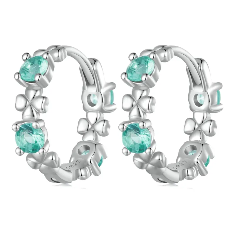 Pandora-stijl oorbellen met vierklaverige hoepels - BSE826