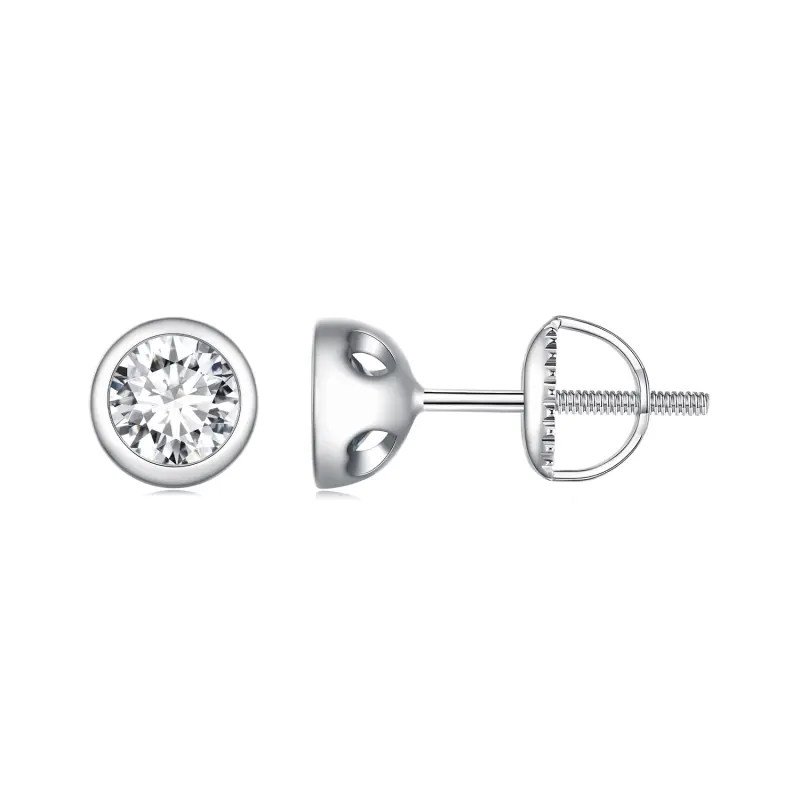 Pandora-stijl Oorringen met Bezel-gezette Moissanite Studs - MSE026