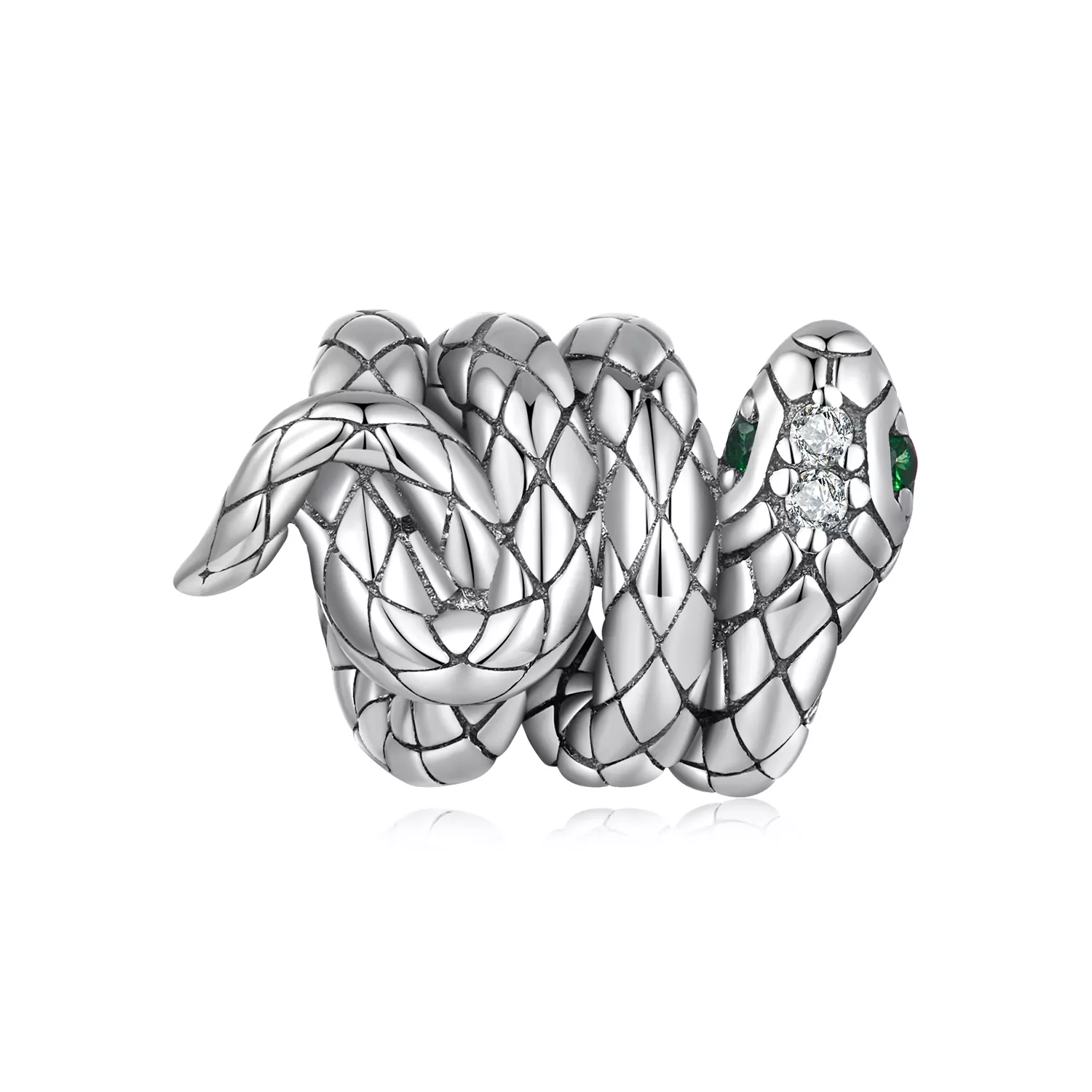 De Pandora Style Coiled Spirit Snake Charm - SCC2549, een betoverende toevoeging aan je charmecollectie. Doordrenkt met een gevoel van mystiek en speelsheid, is deze slangenbedel ontworpen om te boeien en te betoveren. Deze bedel is vervaardigd met nauwgezette aandacht voor detail en voorzien van levendige groene edelsteenversieringen die de ogen van de slang prachtig accentueren. Het opgerolde ontwerp symboliseert de geest van transformatie, groei en wijsheid, waardoor het een betekenisvol stuk is om toe te voegen aan je sieradenrepertoire. Deze bedel is gemaakt van hoogwaardige materialen, waaronder sterling zilver, en biedt zowel duurzaamheid als elegantie. De compatibiliteit in Pandora-stijl zorgt voor een moeiteloze integratie met uw bestaande bedelarmbanden of kettingen, waardoor u unieke en gepersonaliseerde sieradencombinaties kunt creëren. Deze bedel is perfect voor slangenliefhebbers of mensen die op zoek zijn naar een vleugje intriges in hun stijl. Het is een veelzijdig accessoire dat moeiteloos bij elke outfit of gelegenheid past. Of je het nu alleen draagt of combineert met andere bedels, het zorgt zeker voor gespreksstof en complimenten. Geef toe aan je gevoel van nieuwsgierigheid en omarm de allure van de Pandora Style Coiled Spirit Snake Charm - SCC2549. Til je sieradenspel naar een hoger niveau met deze boeiende bedel die de essentie van transformatie belichaamt en een vleugje betovering aan je ensemble toevoegt.
