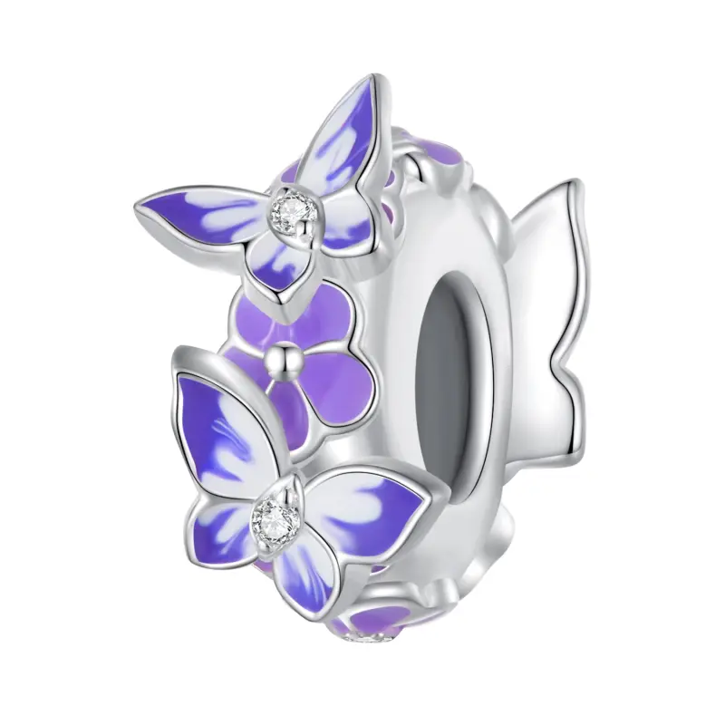 De Pandora Style Butterfly Spacer - SCC2462, een boeiend accessoire dat uw stijl naar nieuwe hoogten zal tillen. Op deze prachtige spacer is een sierlijke paarse vlinder te zien die danst tussen een bloemenbed, wat een aura van vrijheid en elegantie uitstraalt. Het veelzijdige ontwerp past moeiteloos bij elke outfit en biedt eindeloze inspiratie voor je mode-keuzes. Deze vlinderafstandhouder is vervaardigd met nauwgezette aandacht voor detail en heeft een luxueuze charme die zeker zal boeien. Het ingewikkelde vakmanschap en de hoogwaardige materialen die bij de creatie zijn gebruikt, zorgen voor een premium look en feel, waardoor u met vertrouwen uw persoonlijke smaak kunt laten zien. Deze spacer in Pandora-stijl voegt niet alleen een vleugje verfijning toe aan je sieradencollectie, maar heeft ook een praktisch doel. Het kan moeiteloos aan uw armband of ketting worden toegevoegd om een persoonlijke en unieke look te creëren. Gebruik het om uw favoriete charmes te scheiden en te benadrukken, waardoor een harmonieus arrangement ontstaat dat uw individualiteit weerspiegelt. Geniet van de allure van deze vlinderafstandhouder en laat hem het middelpunt van uw sieradenensemble worden. De levendige kleur en het sierlijke ontwerp maken het tot een opvallend stuk dat overal de aandacht en bewondering zal trekken. Til je stijl naar een hoger niveau en omarm de charme van de Pandora Style Vlinder Spacer - SCC2462.