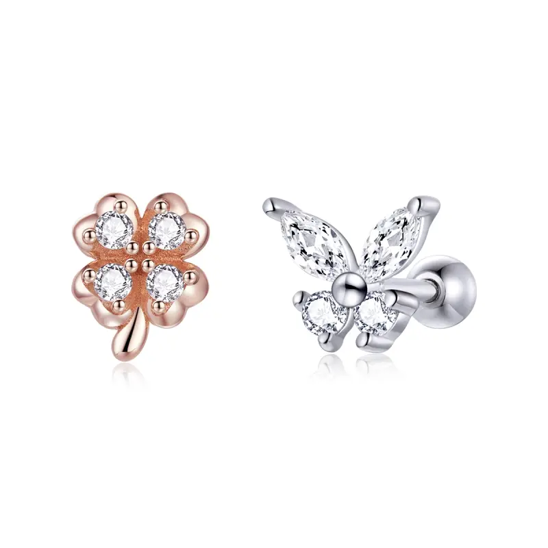 Pandora Style Bicolor Gelukkig Gras en Vlinders Oorknopjes - SCE1008