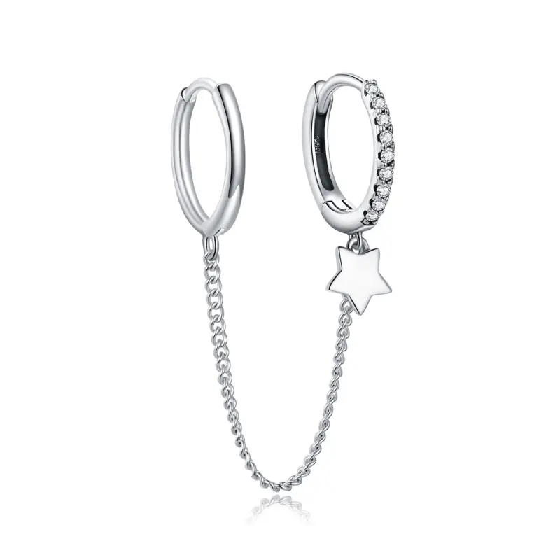 Onze prachtige Pandora Style zilveren enkele ster bungelende oorbellen - SCE914, het perfecte accessoire om een vleugje hemelse charme toe te voegen aan elke outfit. Deze met zorg vervaardigde oorbellen zijn ontworpen om jou te laten stralen als een ster. Deze oorbellen zijn gemaakt van hoogwaardig zilver en hebben een prachtig ontwerp met één ster dat sierlijk aan je oren bungelt, waardoor bij elke beweging een betoverend effect ontstaat. De ingewikkelde details en gepolijste afwerking van de sterren stralen elegantie en verfijning uit, waardoor ze een ideale keuze zijn voor zowel casual als formele gelegenheden. Deze oorbellen verhogen niet alleen uw stijl, maar bieden ook uitzonderlijk comfort. De lichtgewicht constructie zorgt ervoor dat je ze de hele dag kunt dragen zonder enig ongemak of irritatie. De veilige haaksluiting garandeert een veilige pasvorm, zodat je vol vertrouwen kunt pronken met je unieke gevoel voor mode. Deze Pandora Style zilveren enkele ster bungelende oorbellen - SCE914 zijn niet alleen mooi, maar ook veelzijdig. Ze passen moeiteloos bij elke outfit, of je je nu verkleed voor een avondje uit of een vleugje glamour toevoegt aan je dagelijkse look. Ze zijn ook een attent cadeau voor dierbaren en symboliseren de grenzeloze mogelijkheden en ambities die sterren vertegenwoordigen. Upgrade je sieradencollectie met deze prachtige oorbellen die stijl, comfort en veelzijdigheid combineren. Bestel vandaag nog uw Pandora Style zilveren enkele ster bungelende oorbellen - SCE914 en laat uw innerlijke ster helder schijnen.