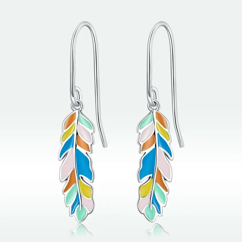 Pandora Style Gekleurde Veren Oorhangers - SCE1398
