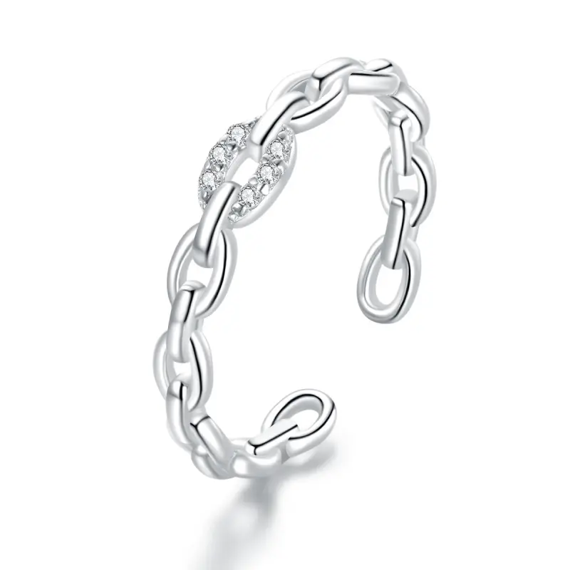 De Pandora Style Geometrische Chain Open Ring - BSR145, een prachtig stuk dat modern design moeiteloos combineert met tijdloze elegantie. Deze ring is vervaardigd met precisie en aandacht voor detail en is een must-have voor iedereen die verfijnde sieraden waardeert. Deze open ring heeft een uniek geometrisch kettingontwerp en voegt een vleugje eigentijdse flair toe aan elke outfit. De delicate, in elkaar grijpende kettingen creëren een betoverend visueel effect, waardoor het een echt statement-stuk is. Het open ontwerp zorgt voor een eenvoudige aanpassing en zorgt voor een comfortabele pasvorm voor alle vingergroottes. Deze ring is gemaakt van hoogwaardige materialen en is niet alleen visueel aantrekkelijk, maar ook duurzaam en gaat lang mee. De hoogwaardige metalen afwerking voegt een luxueus tintje toe, waardoor hij perfect is voor zowel casual als formele gelegenheden. Of je hem nu alleen draagt of samen met andere ringen, hij voegt moeiteloos een vleugje glamour toe aan elk ensemble. De veelzijdige en stijlvolle Pandora Style geometrische open kettingring - BSR145 is een perfect cadeau voor jezelf of een geliefde. Het straalt vertrouwen en verfijning uit, waardoor het geschikt is voor alle leeftijden en persoonlijke stijlen. Geef uw sieradencollectie een boost met dit voortreffelijke stuk dat iedereen onder de indruk zal achterlaten. Geniet van de schoonheid van modern design met de Pandora Style geometrische open kettingring - BSR145. Ervaar de perfecte mix van stijl, kwaliteit en veelzijdigheid. Voeg deze elegante ring vandaag nog toe aan je collectie en laat hem je kenmerkende accessoire worden.