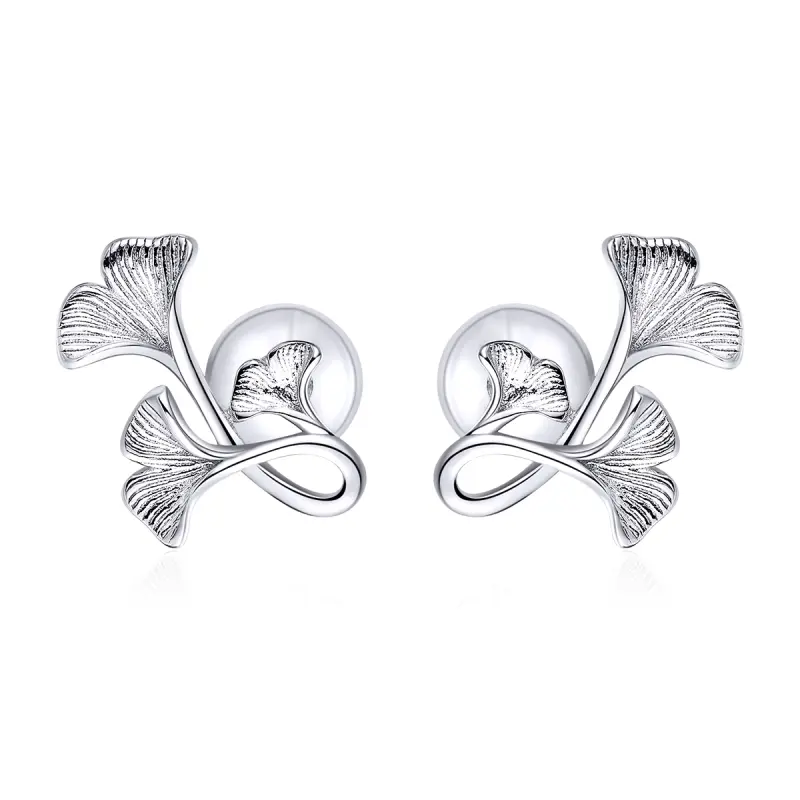 Pandora Style Ginkgo blad Oorknopjes - BSE328