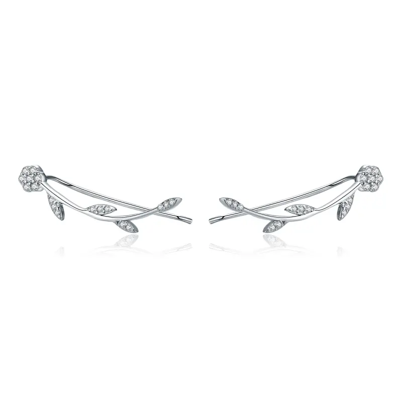 Pandora Style Glanzende bladeren Oorknopjes - SCE266