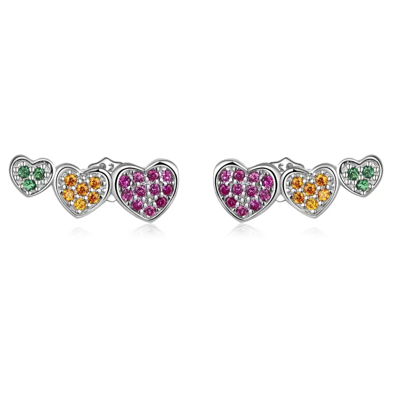 Pandora Style Kleurrijke Harten Oorknopjes - BSE588