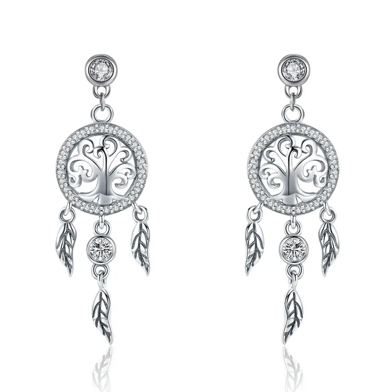 Pandora Style Life Tree & Dromenvanger Oorhangers - SCE457