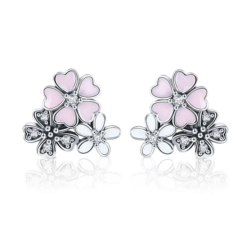 Pandora Style Madeliefjes En Kersenbloesems Oorknopjes - SCE400