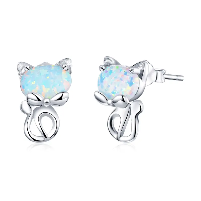 Pandora Style Opaal Schattige Kat Oorknopjes - SCE828