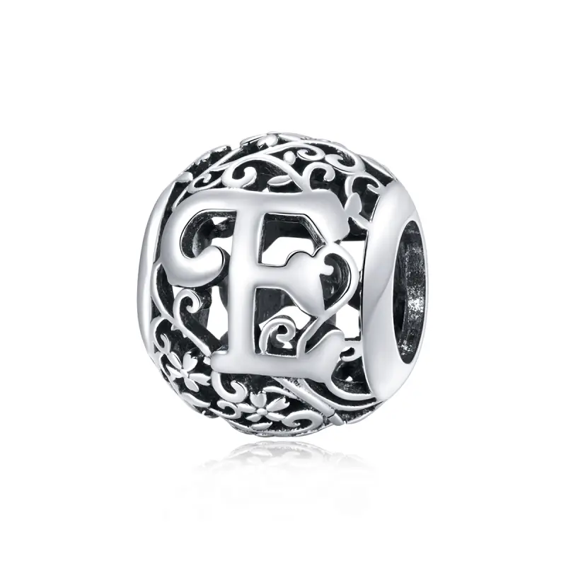Pandora Style Opengewerkte Bloem Letter E Bedel - SCC1444-E