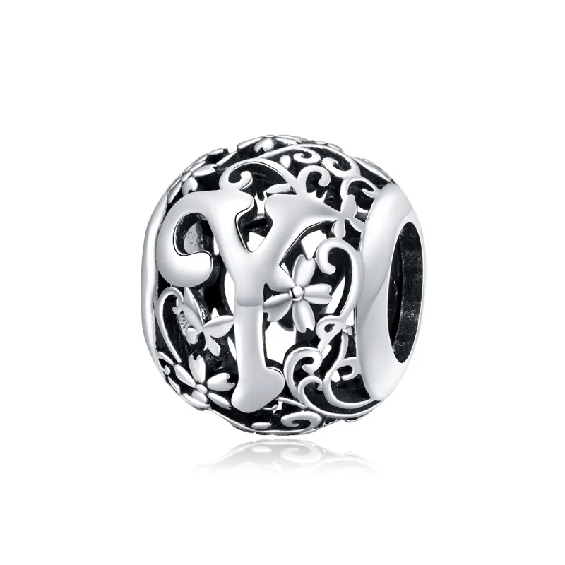 Pandora Style Opengewerkte Bloem Letter Y Bedel - SCC1444-Y