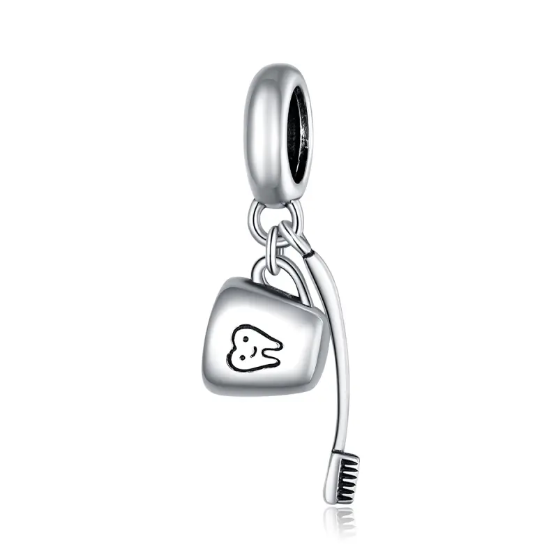 Pandora Style Tandenborstel en beker Hangende Bedel - SCC1597