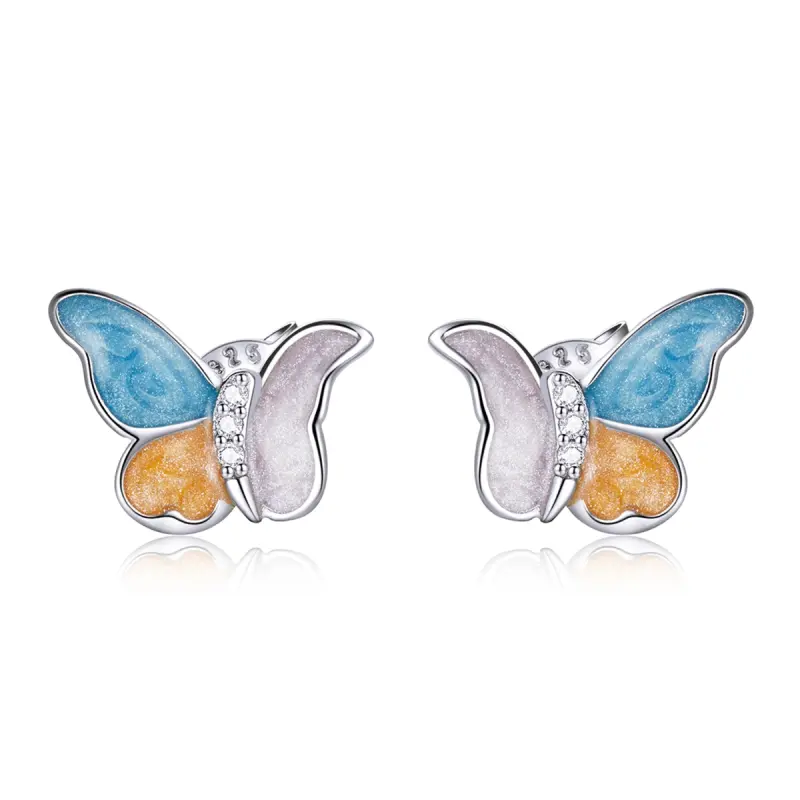 Pandora Style Vlinder met drie kleuren Oorknopjes - SCE1156